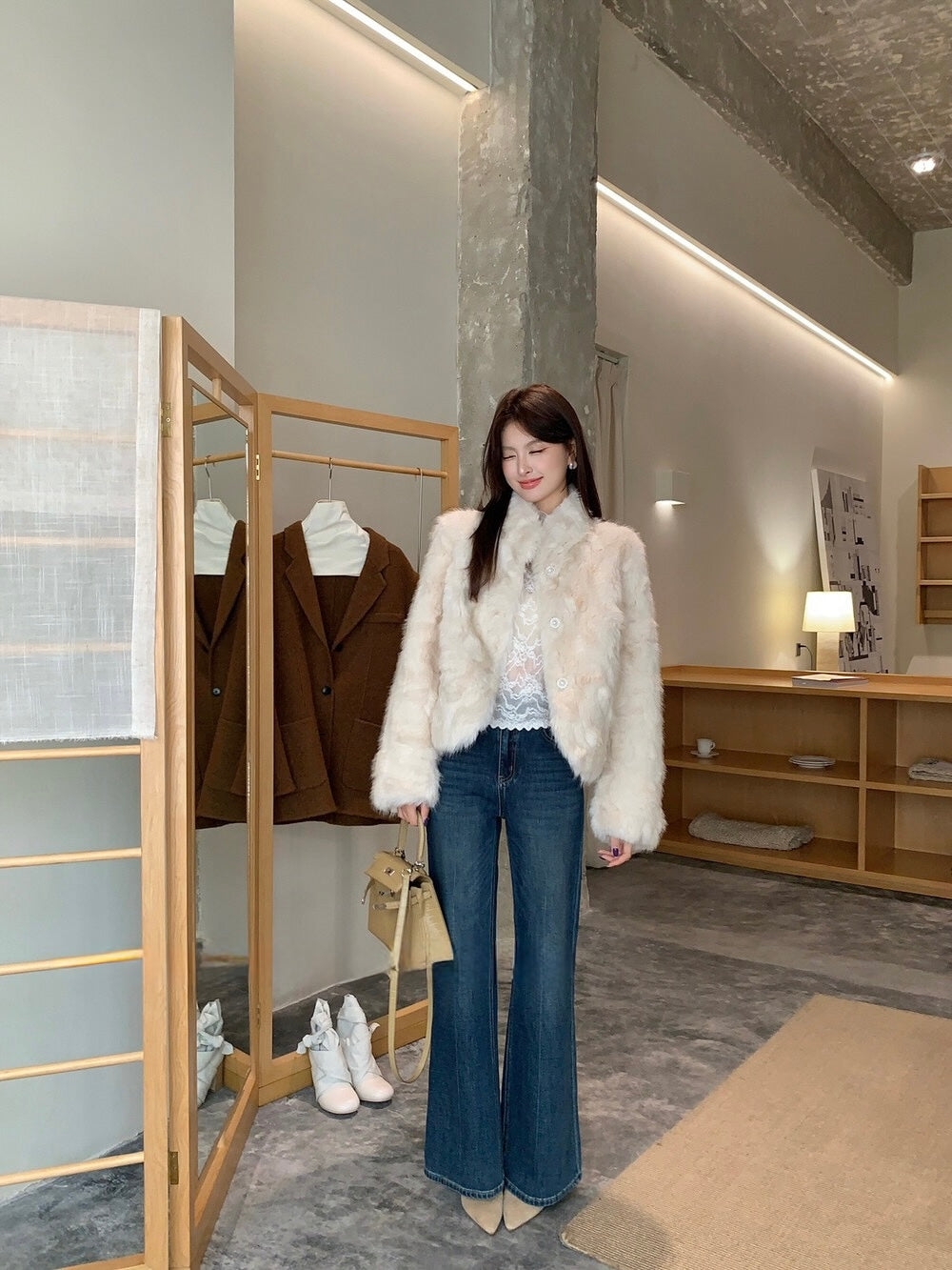 [Fluffy] Winter Synthetic Faux Fur Jacket