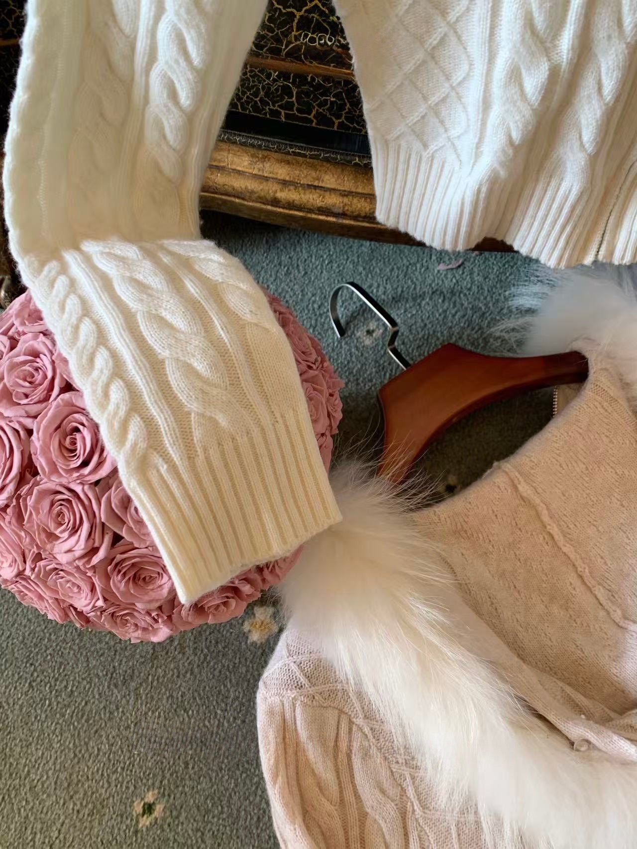 [Fluffy] Wool Cardigan with Fox Fur Hood