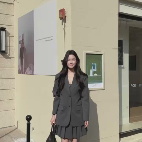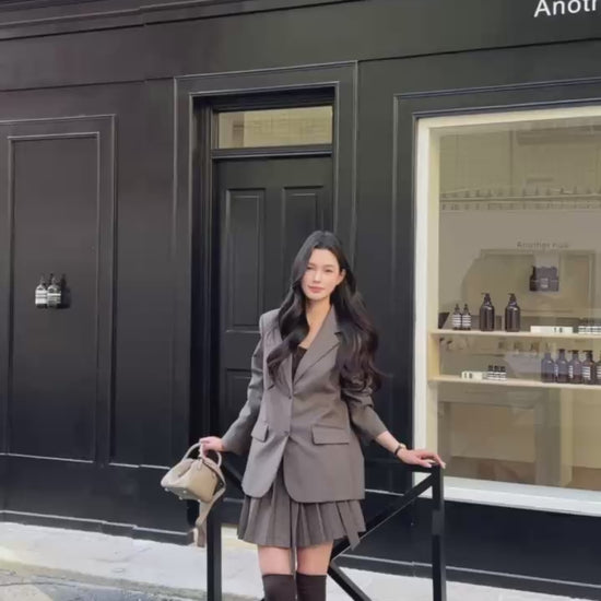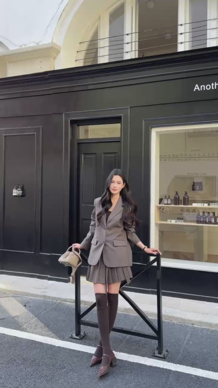 [Miu Style] Stripes Blazer + Pleated Skirt Set