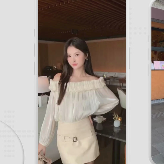 [Stylish] White Label Off-Shoulder Chiffon Top