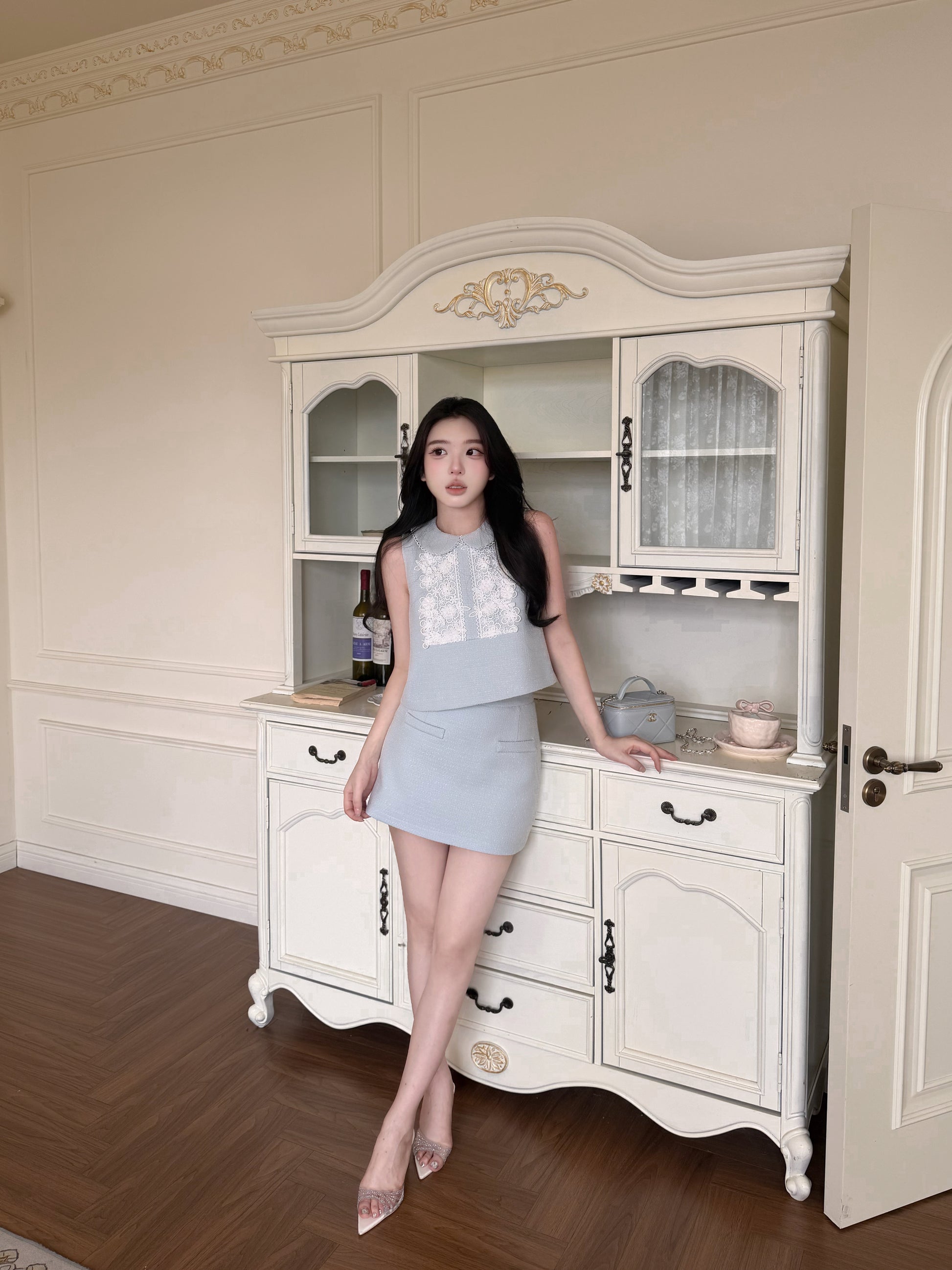[Celebrity] Embroidered Short-sleeve Top + Skirt Set (Q1103)